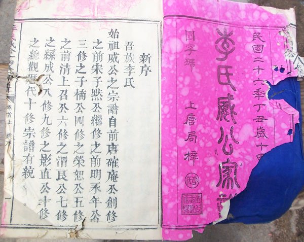 上唐李氏同为威公后裔,在威公第十三世,分为两兄弟李嘉由和李嘉善两兄弟,后在上唐就分为两支开始修谱,为上唐李氏旺族奠定了基础。其两支后裔成旺族后分另于明清时期在上唐镇建设豪宅“十记”和“十号”,在当地传为佳话。下面是李氏家谱的图片: