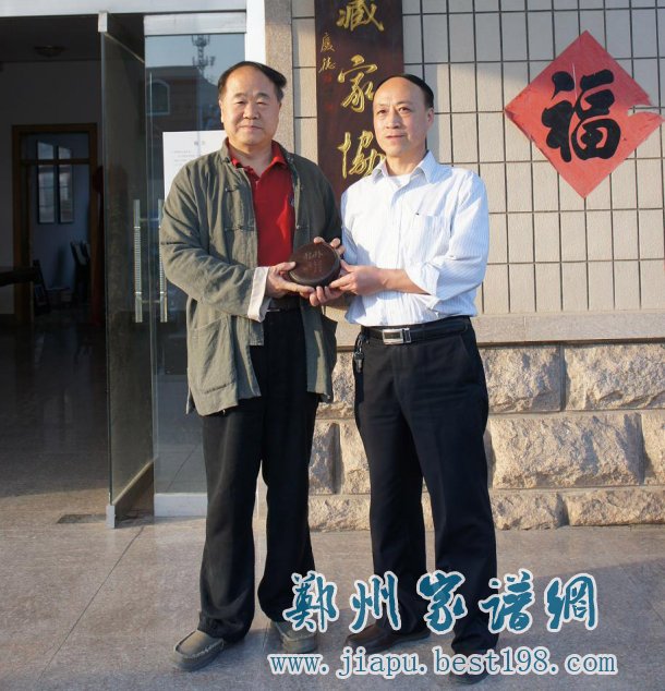 近日,从单氏家谱网了解到,莫言先生在获得诺贝尔文学奖后,专程回到高密,并在此期间拜访了中华单氏研究会副会长兼秘书长单既建先生。单既建先生和莫言素来就是好友,二人相见后,互相赠送了礼物。