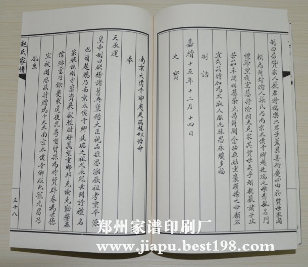 近日,赵匡胤的家谱在我厂印刷完毕,正式交付客户。据了解,赵匡胤的家谱共分为四卷,这部家谱记录了赵匡胤和赵光义家族的发展历程,并详实的记载了家族的成员名单。如果您想研究或者收藏赵匡胤和赵匡义的家谱,可以联系我们的工作人员,电话:0371-63605196,手机13838392853(魏经理)。